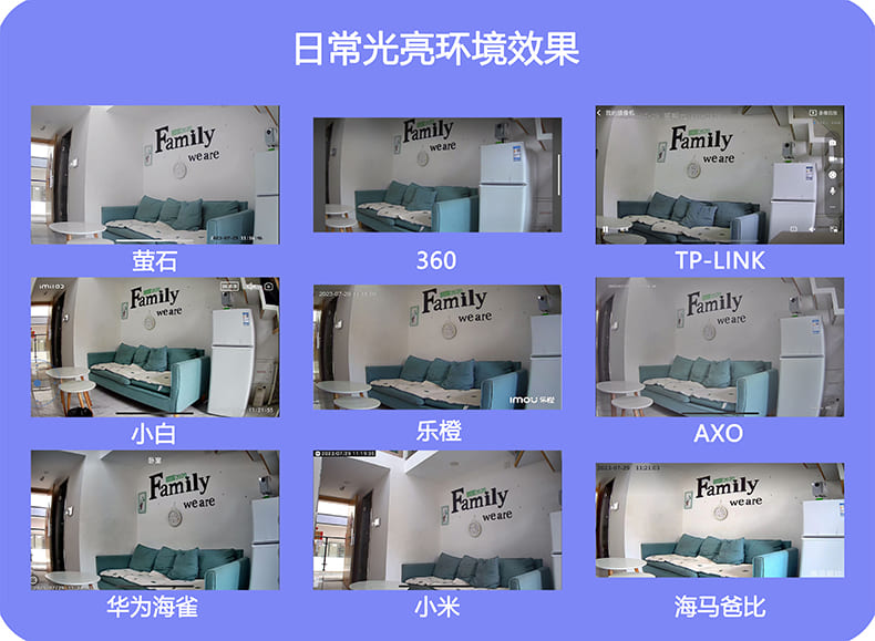 第二梯队:萤石、华为海雀、小米、海马爸比、TP-LINK和小白的画质要昏暗些;;