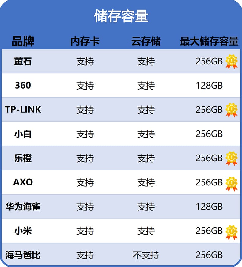 摄像头拍摄视频后需要进行存储,一方面考虑数据存储的成本,一方面要考虑安全性。家用摄像头最常见的存储方式为:TF内存卡和云端存储。除了海马爸比仅支持TF卡储存之外,其他都支持TF卡+云存储两种方式,云存储都是要额外付费开通的。而且可能会涉及到网络安全问题,我们日常的监控内容可能会被不法分子盗走!反正不论是否具有加密保护,我们在使用家用摄像头时都还是要注意保护自己的隐私,不需要用的时候及时遮蔽摄像头。